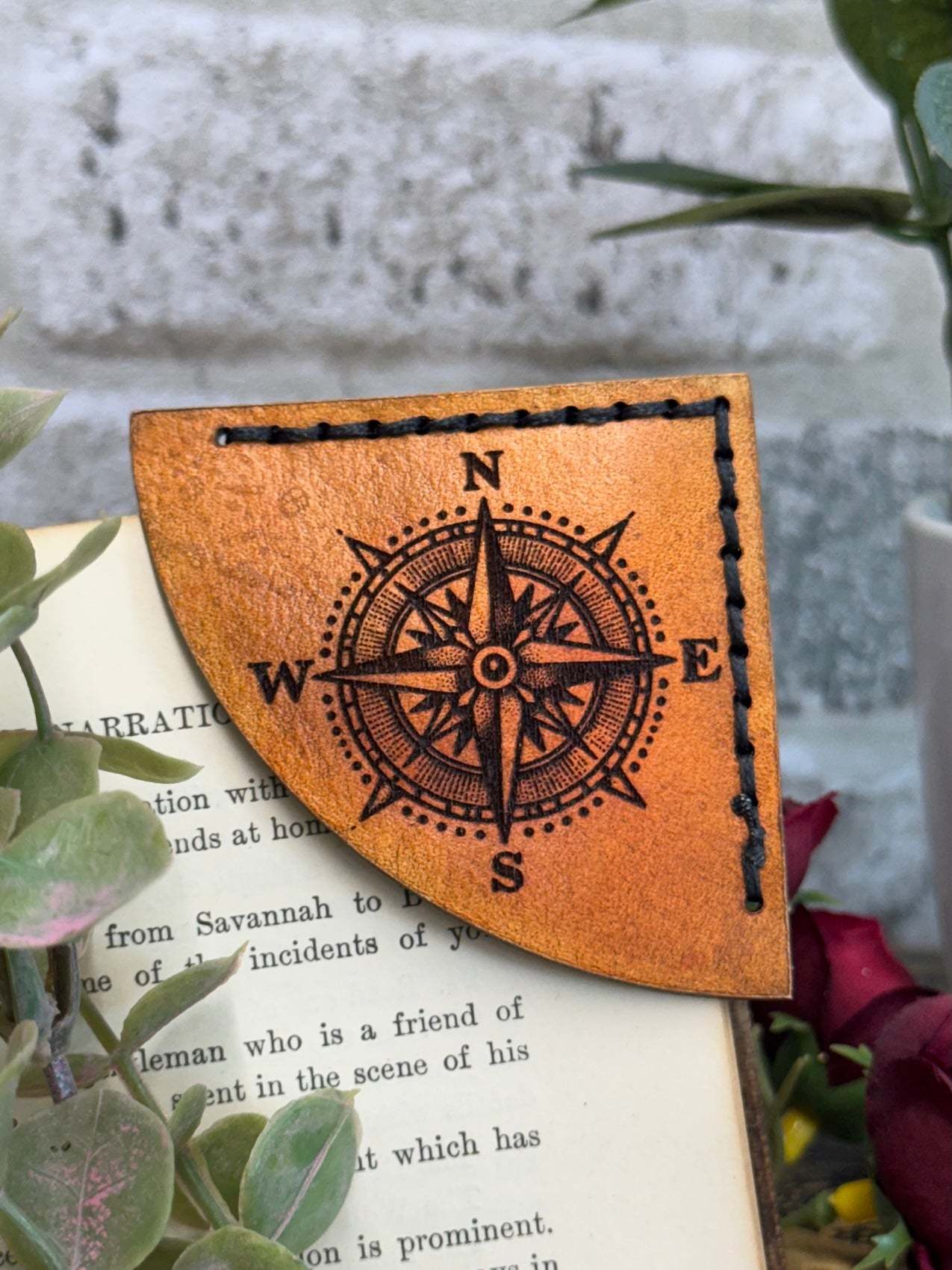 Compass Leather Bookmark – Navigate Your Next Adventure