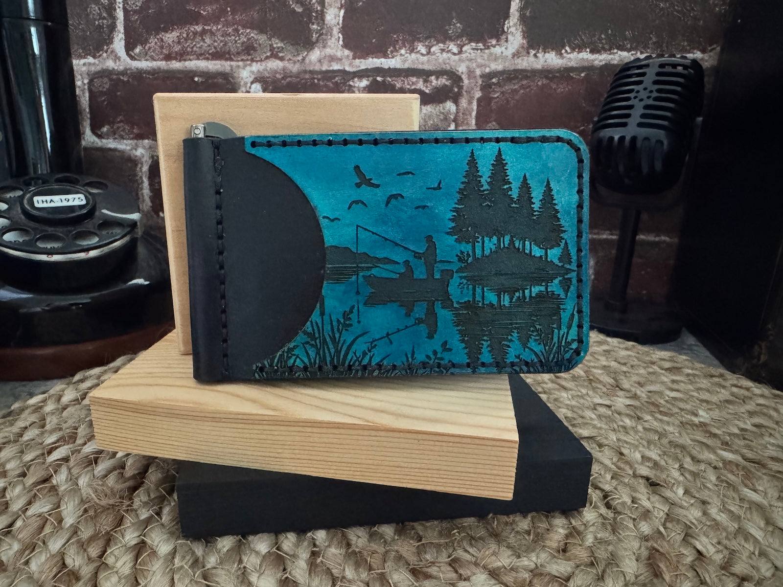 Whether you’re casting a line at dawn or reminiscing about your favorite lake, this Fishing Leather Wallet with Money Clip brings a quiet tribute to the outdoors. Featuring a serene laser-engraved design of a fisherman and woodland scene, it’s built for those who appreciate nature—and who carry a little bit of it with them wherever they go.