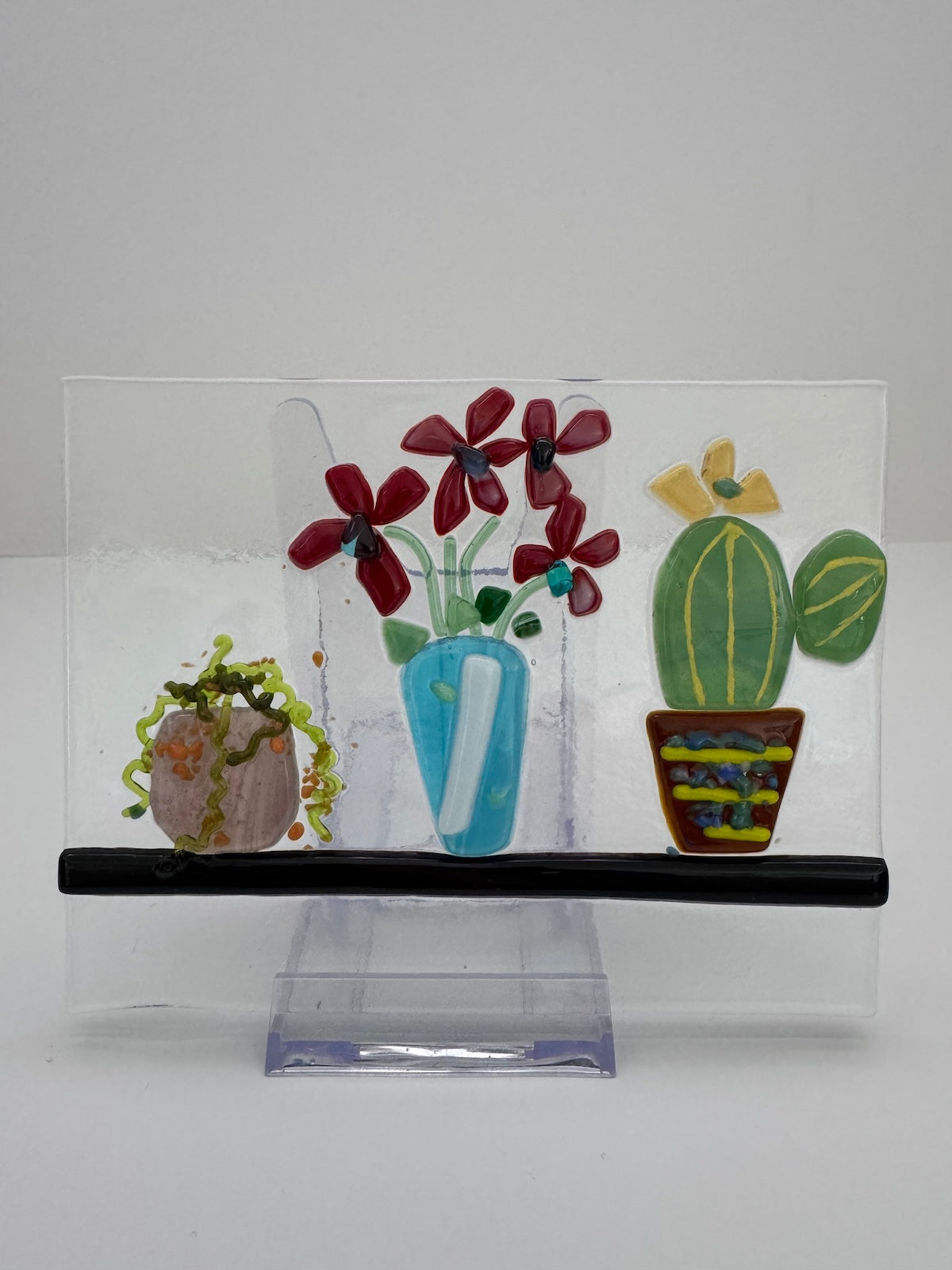 Fused Glass Shelf Garden Sun Catcher – 6x6" Handmade Wall Art