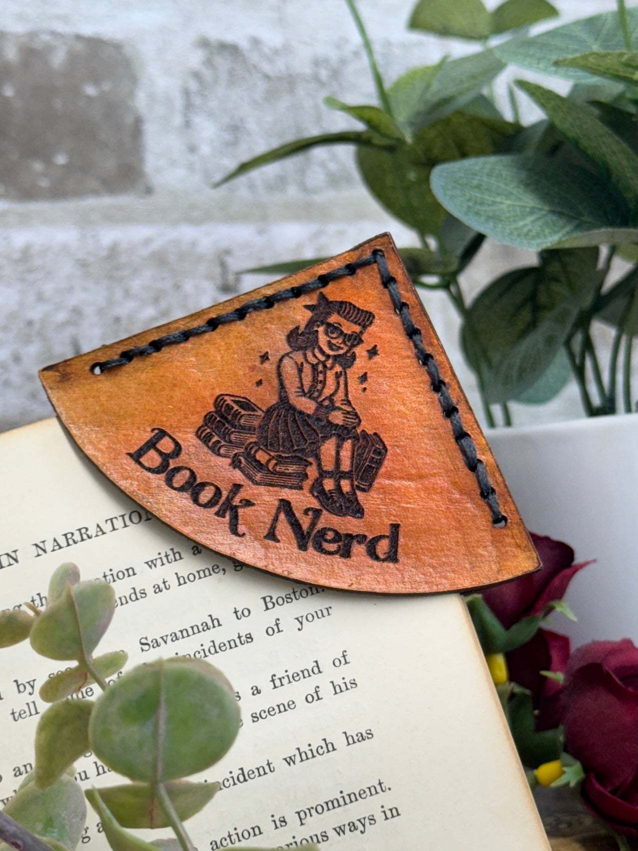 For the quirky bookworms who proudly wear the “nerd” badge, this handmade leather bookmark brings retro charm to your reading nook. Engraved with a 1950s-style girl in oversized glasses perched on a stack of books, this corner bookmark tucks neatly onto your page and celebrates your inner bibliophile.