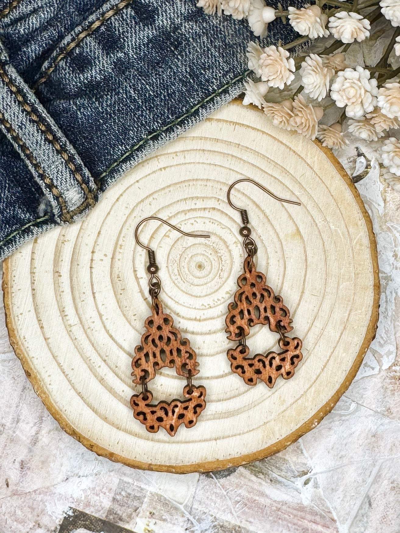 At 2 1/8" x 3/4", these Dangle Earrings are not just accessories; they're expressions of your unique style and personality. Crafted from lightweight wood with precision and care, they are comfortable to wear all day long, ensuring you can make a statement without any discomfort.