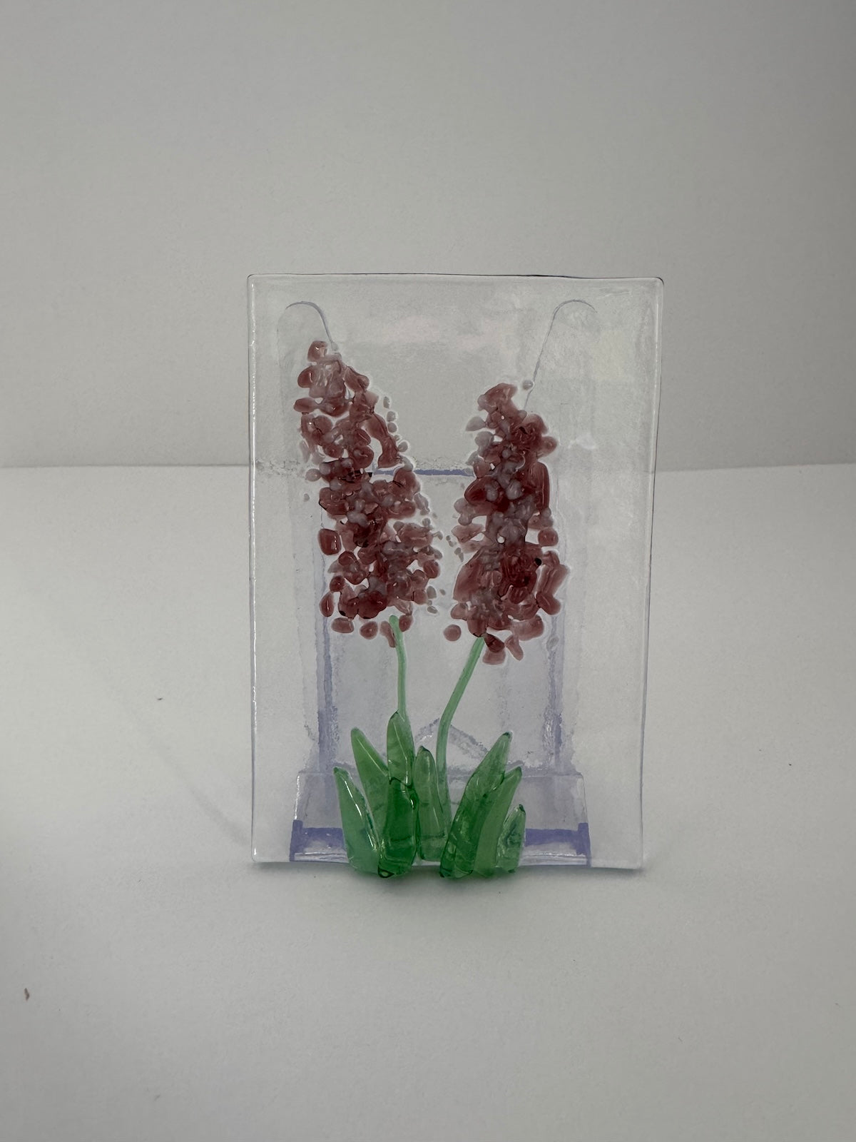 Handmade fused glass sun catcher with two lavender flower stalks