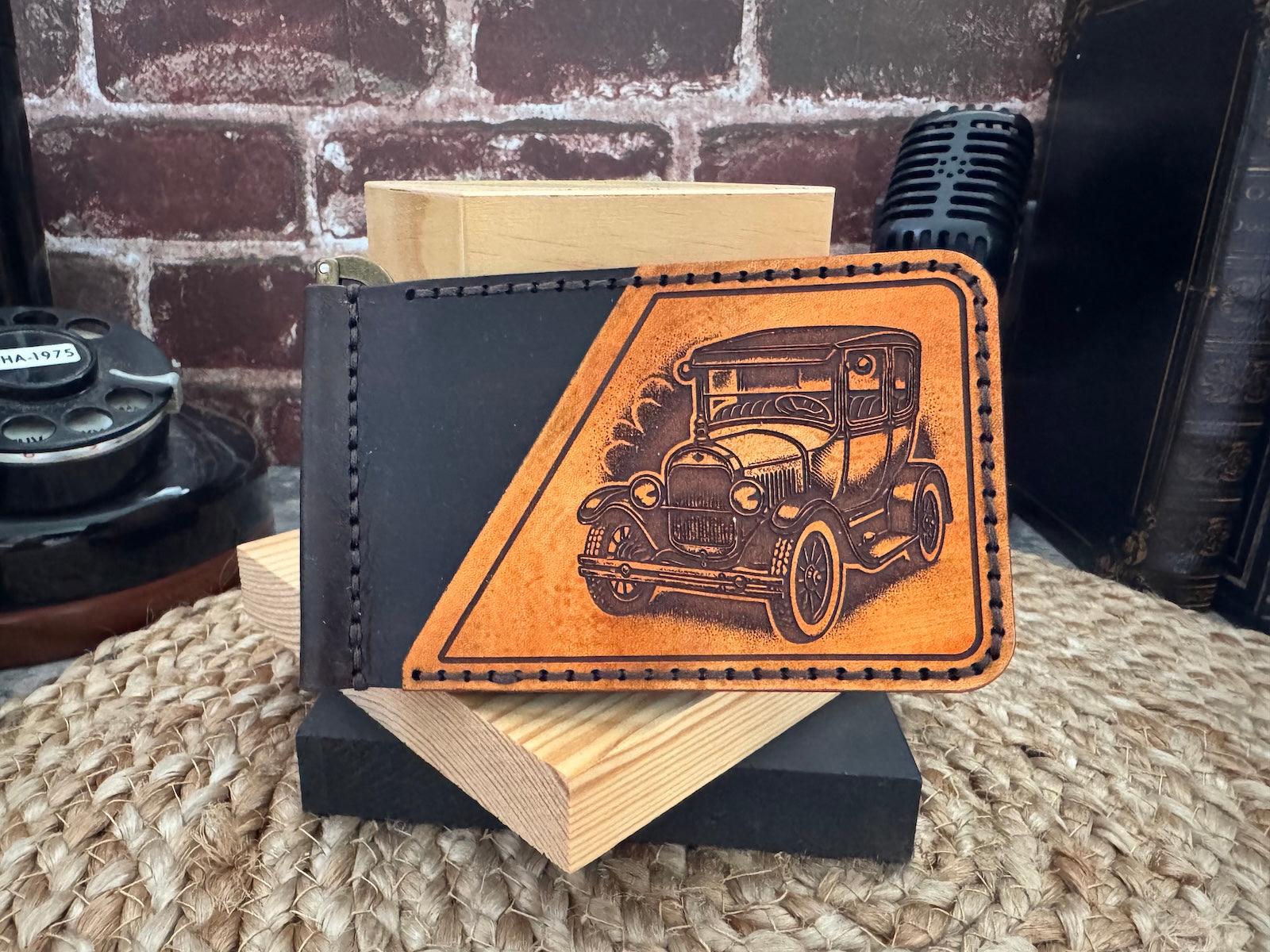 Model T Leather Wallet with Money Clip – Handmade Vintage Car Wallet for Men