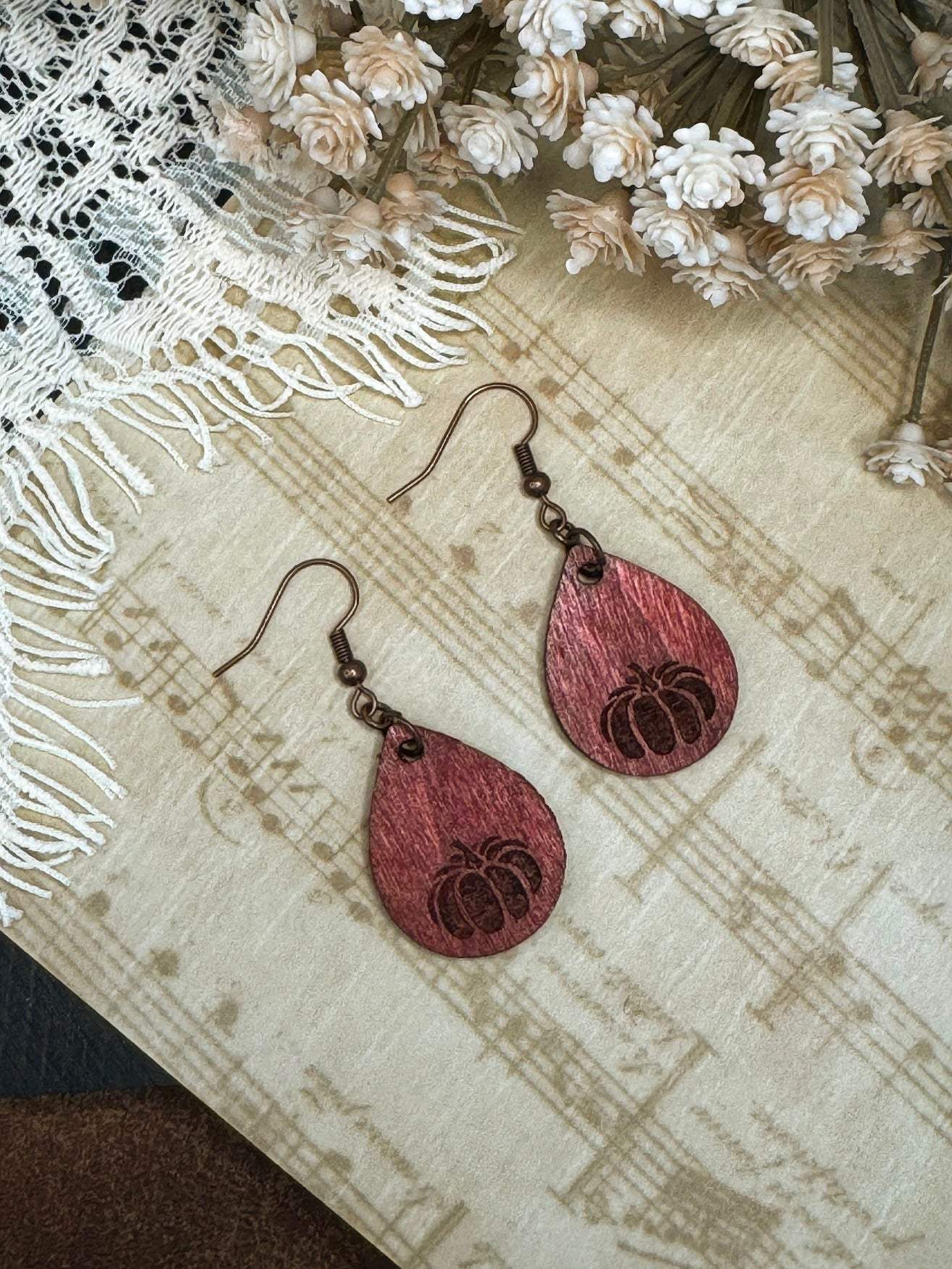 Introducing our Pumpkin Teardrop Wooden Earrings - the perfect blend of simplicity and charm! These delightful earrings feature a classic teardrop design crafted from high-quality wood, adorned with a whimsical pumpkin engraved design that adds a touch of festive flair to any ensemble.